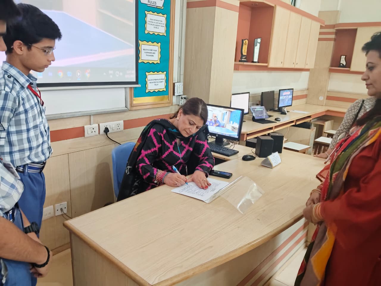 The Computer Department successfully organized a Tech Exhibition on 11th October 2025, showcasing the creativity and technical expertise of our students. The exhibition aimed to provide a platform for students to present innovative ideas and practical applications of technology across diverse domains. Students from various grades enthusiastically participated, presenting projects, websites, applications, movies, and presentations on themes such as Health and Technology, Cyber Security, Artificial Intelligence, and Gaming. Each exhibit reflected the students’ understanding of real-world challenges and their ability to integrate digital solutions innovatively. The event was graced by the Founder Principal and Director Mrs. Usha Chopra, the Director (Innovations) Mrs. Vandana Chawla, and the Principal, Mrs. Neerja B. Anand, whose presence added significance and inspiration to the occasion. The exhibition received an overwhelming response from students, teachers, and parents, who appreciated the creativity and technical proficiency displayed by the participants. The event not only encouraged critical thinking and collaboration among students but also highlighted the department’s commitment to promoting innovation, creativity, and digital literacy.